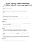 2016 Awards Purpose: The John G. Hauck Scholarship Award was established to honor BASA Executive Director Emeritus John Hauck and to provide support to a BASA member's dependent who is pursuing a career in education. Media coverage and national educational reports constantly emphasize that young people are not choosing education as a profession as they once did. The brightest and most talented are finding other vocations. This is happening at a time when their skills and talents are needed most. The John G. Hauck Scholarship Fund is an attempt to not only honor John and the education profession but also help students who have chosen education as a career. Qualifications: To be eligible, a student must be the dependent of an active or retired BASA member and enrolled in the college of education at an accredited college or university. Preference will be given to upcoming college juniors and seniors. The candidate's potential for success in the field of education will be a primary factor. A recipient can accept the scholarship one time only. Procedures: Applicants are requested to provide recommendations and support documentation from college professors and/or supervising teachers. The scholarship award will be given in an amount equal to the earnings of the fund (at least $1,000). The award will be paid directly to the recipient to be used to help defray the cost of pursuing a career in education. Selection of the recipient will be made by the BASA Scholarship Committee. This committee consists of three members of the executive committee appointed by the BASA President. The recipient will be awarded the scholarship money at a ceremony during the BASA Fall Conference. Deadline to submit the application is September 7, 2016. Fax: 614-846-4081, email: hall@basa-ohio.org . - OVER PLEASE - SCHOLARSHIP APPLICATION ON REVERSE SIDE OF THIS PAGE Contributions: You may make a contribution to the John G. Hauck Scholarship Fund at any time by writing a check payable to BASA (with a notation that it is for the scholarship fund) and mailing it to: BASA at 8050 N. High St., Suite 150, Columbus, OH 43235-6486. Your support is needed to maintain the fund. Please help honor our profession, our association and John Hauck.