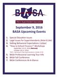 1. Special Education Issues 2. Legal Issues for Superintendents (Bricker&Eckler) 3. Setting Behavioral Expectations (UpSlope) 4. “How to School Finance I” Workshops - September 14-15, 2016 (Nextweek) - October 26-27, 2016 *NOTE: Workshop for New Superintendents is October 19-20. 5. BASA Professional Learning Tour Info 6. BASA Fall Conference 7. BASA Conferences At-A-Glance